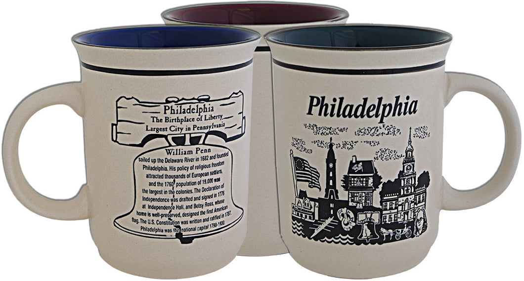 The etched Philadelphia history coffee mug makes a nice souvenir that you can use and enjoy everyday.
