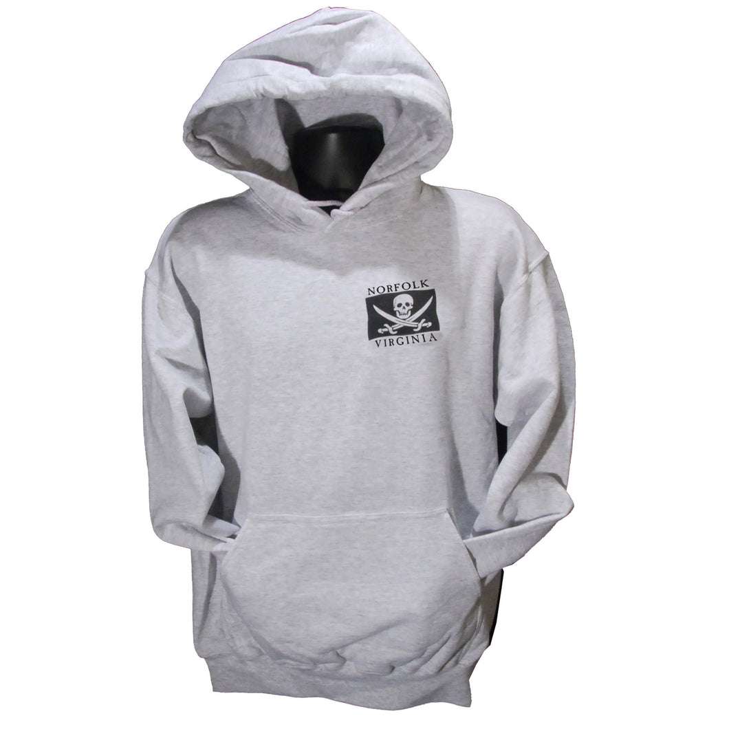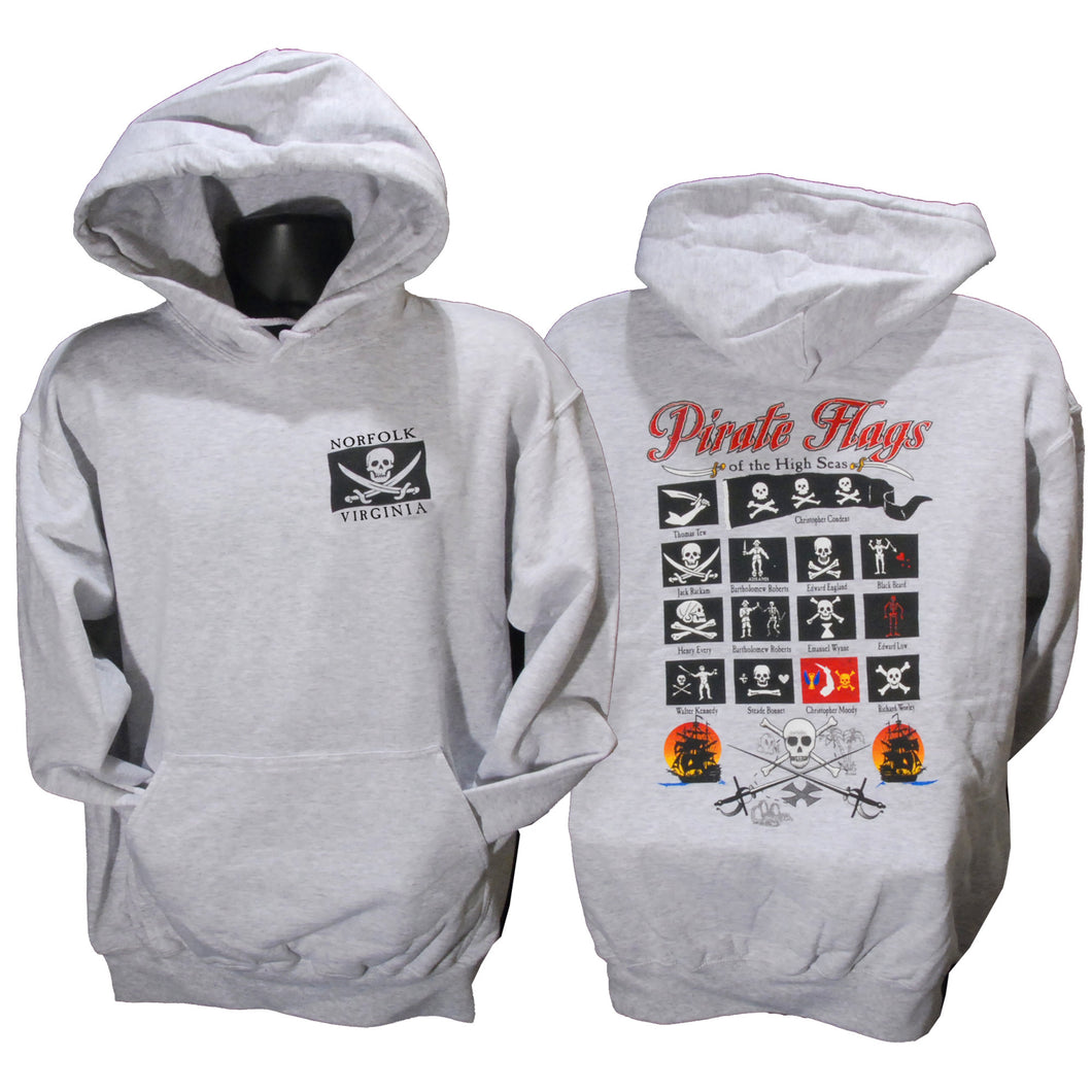 The high-quality HOODED SWEATSHIRT Pirate Flags Norfolk Virginia Ash is a terrific look with fun decoration.