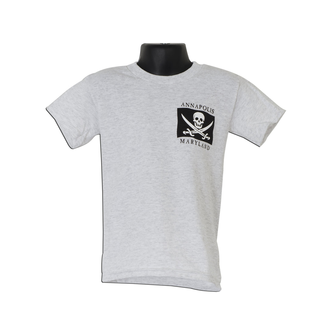 Kids and grandkids will love to have the Youth T 100% Annapolis Pirate Flags Ash.